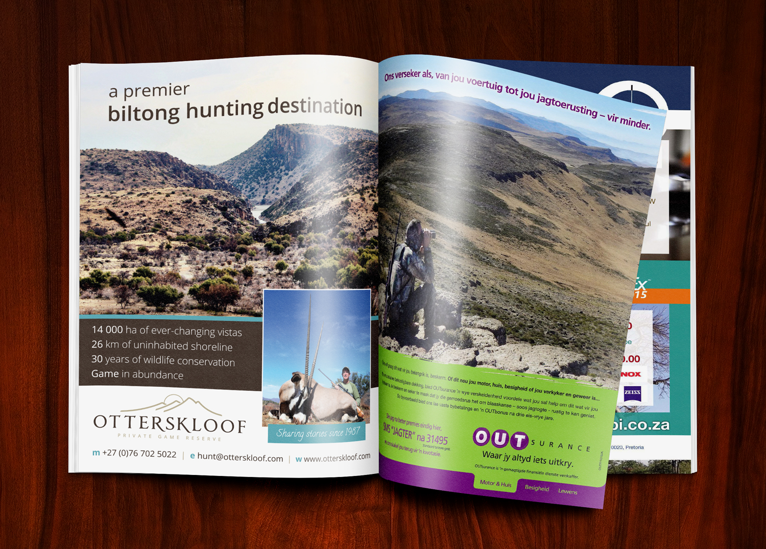 Otterskloof Private Game Reserve spans some 14,000 hectares (34,500 acres) on elevated plains, with majestic koppies (hills) arising from the charming yet harsh and rugged African Bushveld, captivating the most discerning visitor. Otterskloof is by all accounts unrivalled in its appeal as one of Southern Africa’s premier hunting destinations. It was a privilege to work with the Erasmus family and the Otterskloof team in order to make this big branding leap for the reserve.